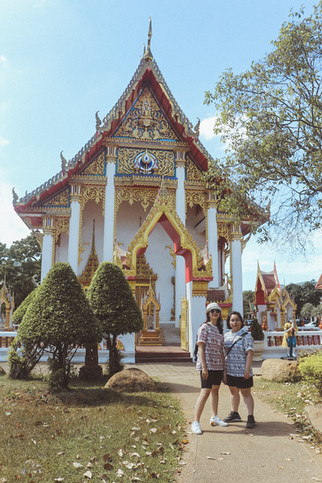 Không khó để bắt gặp hình ảnh chúng mình luôn WFH (work from home), WFC (work from cafe), thậm chí là WFK (work from karaoke), thiệt đó, chẳng hạn như anh K. hẹn nhau đi kara cũng phải vác máy theo để khách gọi cái là bật chế độ "bắt chí" hay tiếng Ănglô-Sắcxông hiện đại gọi là fix bug. Vậy nên cũng không có gì lạ lẫm với hình ảnh trong suốt chuyến công du ở Phú Két, anh K. lúc nào trông cũng đăm chiêu với bầy chí của ảnh mặc kệ tụi mình dẫn ảnh tới đâu. Để ảnh không có cơ hội phản đối, bọn mình đến thăm khu đền Wat Chalong, một trong những khu đền linh thiêng bậc nhất Phuket.