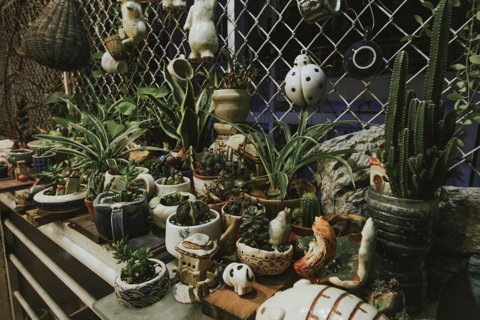 Toòng Teng Ceramic xuất thân từ một căn bếp gốm nhỏ xinh nên bên cạnh tranh mosaic, bạn còn có thể chọn trải nghiệm workshop làm gốm từ 350k chi phí. Không gian ở đây ngoài tông màu Đông Dương vàng ấm thì đồ trang trí chủ yếu là những sản phẩm từ gốm mà tiệm tự làm như lọ hũ, đồ trang sức, mấy cái tượng gốm đáng yêu hay chậu cây xanh mát.